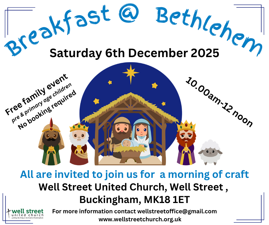 Breakfast at Bethlehem: This is a free extravaganza of Christmas related crafts for Primary School aged children, plus refreshments, held on the first Saturday morning in December .